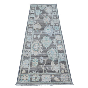 2'9"x8' Dark Silver Gray, Hand Knotted With Natural Dyes, Rural Medallions All Over Design, Wool Weft, Afghan Angora Oushak, Runner Oriental Rug FWR532938