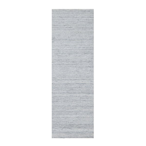 2'7"x8' Cloud Gray, Plush And Lush, Modern Striae Design, Tone On Tone, Soft Pile, Pure Wool, Hand Loomed, Runner, Oriental Rug FWR544356