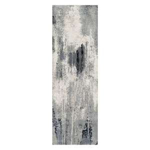2'6"x8' Charcoal Black With Pearl White, Abstract Design, Hand Knotted, Soft To Touch, Wool And Silk, Runner Oriental Rug FWR544860