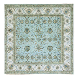 8'1"x8'1" Crystal Blue, Agra, Shah Abbas Flower Vines Design, Luxurious Wool, Denser Weave, Vegetable Dyes, Hand Knotted, Square, Oriental Rug FWR456804