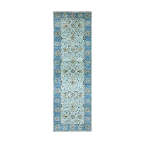 2'7"x8'1" Powder Blue, All Over Shah Abbas Flower Design, Vegetable Dyes, Denser Weave, Agra, Natural Wool, Hand Knotted, Runner, Oriental Rug FWR456870