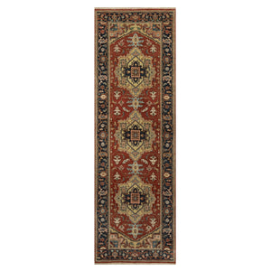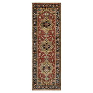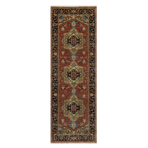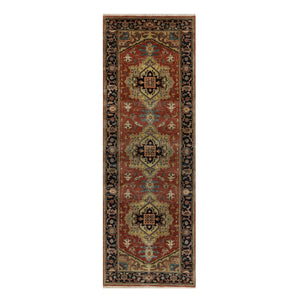 2'6"x8' Ruby Red, Hand Knotted, Heriz Revival With Medallion Design, Denser Weave, Hand Spun New Zealand Wool, Runner, Oriental Rug FWR547440