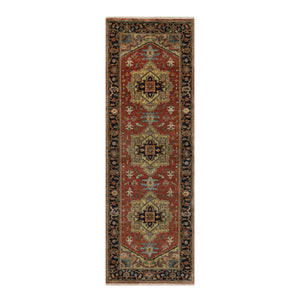 2'8"x8' Auburn Red, Heriz Revival With Medallion Design, Hand Spun New Zealand Wool, Densely Woven, Hand Knotted, Runner, Oriental Rug FWR547464