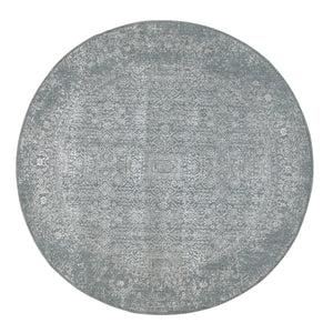 8'1"x8'1" Baby Blue Wool With Real Silk Abstract Design Denser Weave Hi-low Pile Hand Knotted Round Oriental Rug FWR357138