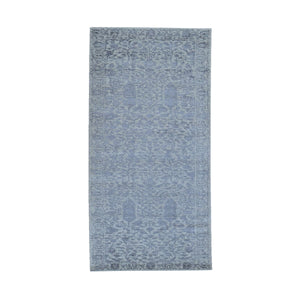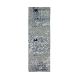 2'8"x7'10" Wool And Silk Silver, Blue Modern Abstract Design Hand Knotted Oriental Runner Rug FWR353262