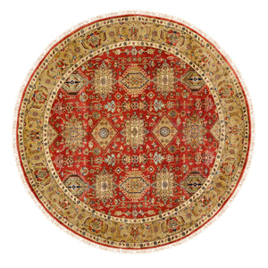 7'9"x7'9" Red Karajeh Design Hand Knotted Pure Wool Oriental Round Rug FWR372792