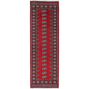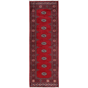 2'6"x8' Berry Red, Soft And Shiny Wool, Princess Bokara With Tribal Medallions, Vegetable Dyes, Hand Knotted, Runner, Oriental Rug FWR7824