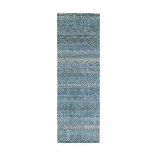 2'6"x7'8" Pacific Blue, Hand Knotted, Kohinoor Herat Pattern, Small Geometric Repetitive Diamond Design, Soft Wool, Tone On Tone, Runner, Oriental Rug FWR458370