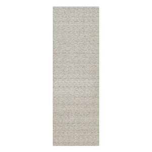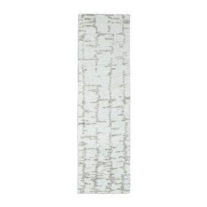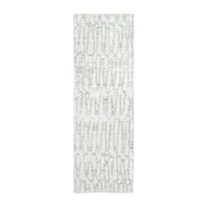 2'6"x8' Alabaster White, Minimalist Swedish Design, Hand Knotted, Organic Wool, Runner, Oriental Rug FWR62142