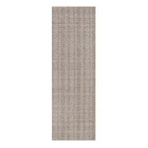 2'6"x8' Tan Brown, Undyed Natural Wool, Stripes Design With Salt And Pepper Effect, Hand Loomed, Runner, Oriental Rug FWR549960