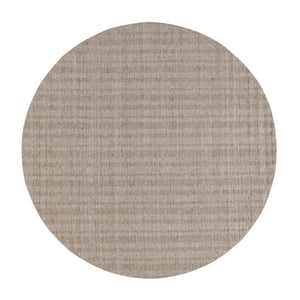 8'x8' Light Brown, Salt And Pepper Effect With Stripes Design, Hand Loomed, Undyed Natural Wool, Round, Oriental Rug FWR549996