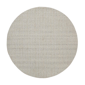 7'9"x7'9" Pearl White, Undyed Natural Wool, Hand Woven, Flat Weave With Pile, Textured, Round, Oriental Rug FWR550368