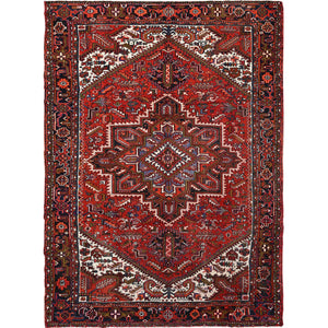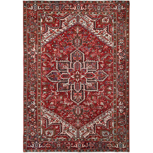 7'10"x11'5" Imperial Red, Pure Wool, Hand Knotted, Semi Antique Bohemian Persian Heriz, Good Condition, Rustic Feel, Sides And Ends Professionally Secured, Cleaned, Oriental Rug FWR511902