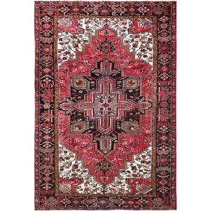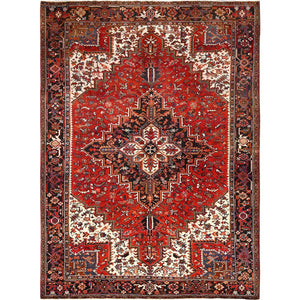 8'x10'8" Crimson Red With Ivory Corners, Semi Antique Bohemian Persian Heriz, Rustic Feel, Pure Wool, Hand Knotted, Good Condition, Sides And Ends Professionally Secured, Cleaned, Oriental Rug FWR511878