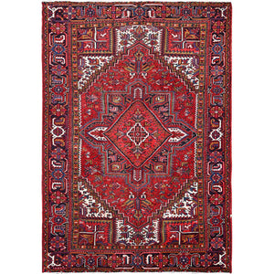 7'9"x10'10" Ajax Red, Pure Wool, Hand Knotted, Vintage Bohemian Persian Heriz, Large Geometric Medallion, Good Condition, Rustic Look, Sides And Ends Professionally Secured, Cleaned, Oriental Rug FWR512034