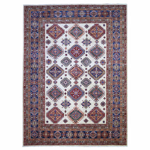 8'4"x11'5" Porcelain White, Organic Wool, Hand Knotted, Dense Weave, Vegetable Dyes, Afghan Super Kazak With All Over Medallions, Oriental Rug FWR447282
