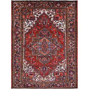 8'4"x11'1" Caliente Red, Hand Knotted With Vivid Colors, Sides And Ends Professionally Secured, Cleaned, Vintage Persian Lustrous Wool Heriz Design, Excellent Condition Oriental Rug FWR516870