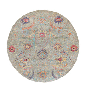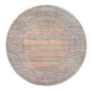• 8'10"x8'10" Colorful Wool And Sari Silk Sarouk Mir Inspired With Repetitive Boteh Design Hand Knotted Oriental Round Rug FWR373896