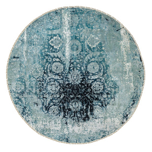 • 8'8"x8'8" Wool And Silk Broken Persian Tabriz Erased Design Hand Knotted Round Oriental Rug FWR351294