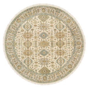 8'10"x8'10" Ivory, Hand Knotted With Soft Colors, Karajeh Design, Soft Pure Wool, Oriental Round Rug FWR381786