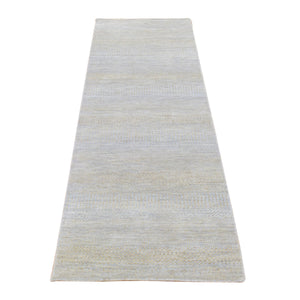 2'8"x9'1" Gray, Modern Grass Design Gabbeh, Densely Woven Hand Knotted Wool And Silk, Runner Oriental Rug FWR481002