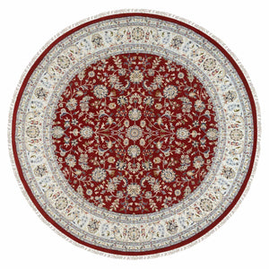 9'1"x9'1" Cherry Red, Hand Knotted Nain With All Over Flower Design, 250 Kpsi Wool, Round Oriental Rug FWR388368