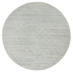 9'x9' Ivory, Modern Design, Hand Knotted, Hand Spun Undyed Natural Wool, Round Oriental Rug FWR390894
