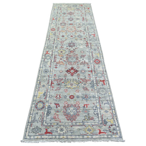2'7"x9'5" Light Gray All Over Design Angora Oushak Natural Dyes, Afghan Wool Hand Knotted Runner Oriental Rug FWR431310