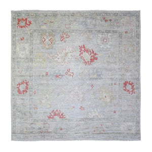 9'10"x9'10" Steel Blue, Hand Knotted 100% Wool, Natural Dyes Afghan Angora Oushak With Soft Colors, Square Oriental Rug FWR445032