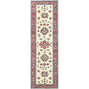 2'7"x8'6" Ivory, Dense Weave Extra Soft Wool, Hand Knotted Afghan Super Kazak Natural Dyes, Runner Oriental Rug FWR496398
