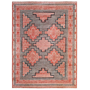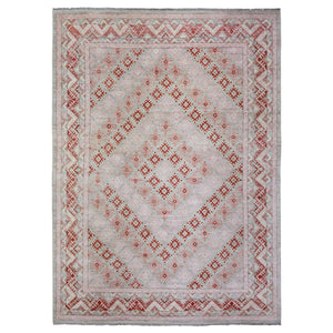 9'x12' Light Red, Anatolian Village Inspired Geometric Style, Soft Wool Hand Knotted Natural Dyes Oriental Rug FWR436194