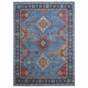 8'10"x11'10" Light Blue, Hand Knotted Shiraz Design With Serrated Medallions, Supple Collection Pure Wool, Oriental Rug FWR504030