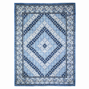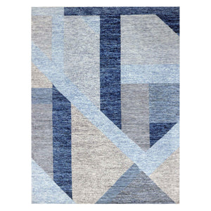 9'2"x11'10" Beau Blue, Geometric Art Deco Collection Soft To The Touch, Soft Wool Hand Knotted, Oriental Rug FWR475770