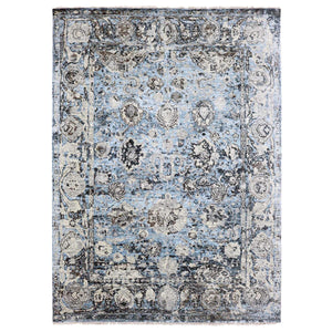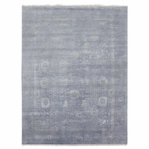 8'10"x11'8" Davy's Gray, Hand Knotted Broken Erased Persian Tabriz Design, Wool And Silk, Oriental Rug FWR475662