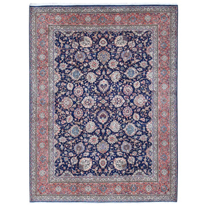 9'2"x12' Midnight Blue, New Persian Kashan All Over Design, Organic Wool Hand Knotted, Oriental Rug FWR483168