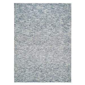 9'x12' Blue And Ivory, Modern Striae Design Soft To The Touch, Pure Wool Hand Loomed, Oriental Rug FWR391482