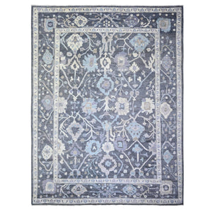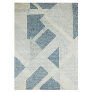 9'2"x12' Stone Blue, Hand Knotted Geometric Art Deco Collection, Organic Wool, Oriental Rug FWR476526