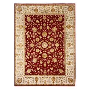 9'x12' Burgundy Red, Rajasthan All Over Leaf Design Thick And Plush, Wool And Silk Hand Knotted, Oriental Rug FWR451590