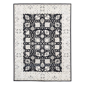 9'x12'2" Ivory And Black, Modern Textured And Roman Floor Design, Wool And Plant Based Silk, Hand Loomed, Oriental Rug FWR505350
