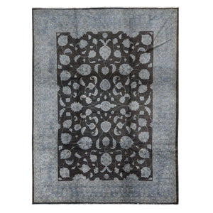 9'x12' Black Overdyed Afghan Peshawar With All Over Design, Hand Knotted Pure Wool, Oriental Rug FWR483960