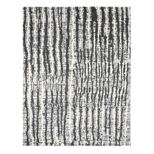 9'1"x11'8" Black And Ivory, Modern Vertical Broken Stripe Design, Plush Pile, Organic Undyed Wool, Hand Knotted, Oriental Rug FWR505080