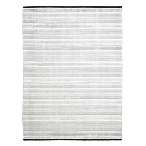 9'x12'1" Black And Ivory, Modern Textured And Variegated Line Design, Wool And Plant Based Silk, Hand Loomed, Oriental Rug FWR505680