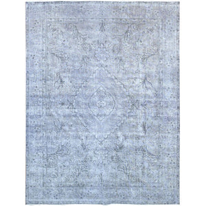 9'6"x12'4" Silver Sconce Gray, Hand Knotted Distressed Vintage Persian Tabriz, Silver Wash Great Condition, Sheared Low, Sides And Ends Secured, Professionally Cleaned, All Wool Evenly Worn, Oriental Rug FWR517158