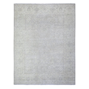 8'10"x10'9" Goose Gray, Vegetable Dyes, White Wash Peshawar, Hand Knotted, Organic Wool, Oriental Rug FWR531360