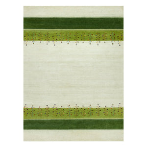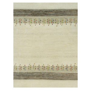 8'10"x12' Porcelain White, Modern Gabbeh Lori Buft Tree Design, Pure Wool, Hand Knotted Thick And Plush, Soft To Touch, Oriental Rug FWR543426