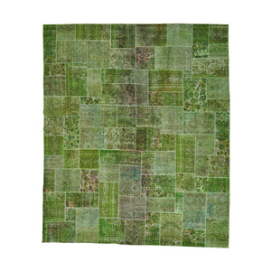 13'2"x15'8" Overdyed Patchwork Worn Down Tabriz Pure Wool Handmade Oversize Rug FWR170778