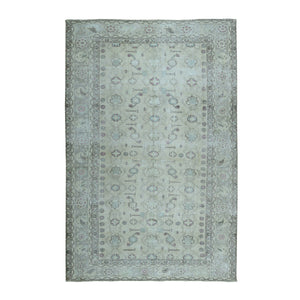 9'7"x12'5" Hand Knotted Shades Of Light Green Overdyed Clean Distressed Vintage Persian Kerman Organic Wool Oriental Rug FWR361830