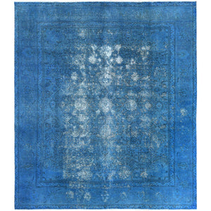 9'8"x10'10" Blue Vintage Overdyed Persian Tabriz Distressed Worn Wool Shaved Down Hand Knotted Squarish Oriental Rug FWR368922