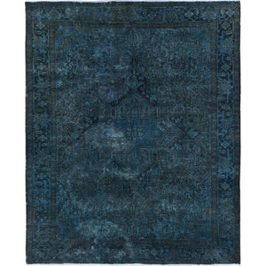 8'x9'8" Aegean Blue, Overdyed Vintage Persian Heriz With Areas Of Wear, Sheared Low, Worn And Distressed, Sides And Ends Professionally Secured, Hand Knotted, 100% Wool, Oriental Rug FWR7692