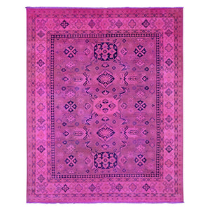8'x10' Hot Pink, Overdyed Kazak With Geometric Medallions Design, Hand Knotted, 100% Wool, Oriental Rug FWR120048